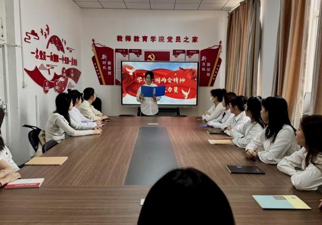 为深入学习贯彻全国两会精神,切实把思想和行动统一到党中央决策部署上来,教师教育学院学前教育专业学生党支部和小学教育专业学生党支部组织我院全体学生党员于2026年3月13日中午12时在系楼党员之家开展“学习全国两会精神,凝聚奋进力量”主题党日活动。